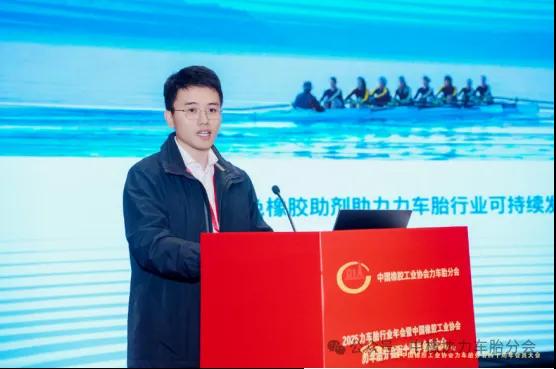 圣奥化学科技有限公司技术中心助理研究员王浩作《绿色橡胶助剂助力力车胎可持续发展》报告。该公司围绕力车胎行业可持续发展,通过自主研发的RT培司、PPD、TMQ“绿色生产工艺”技术的应用,达到“降低成本、提高质量、消减三废”的绿色工艺生产目标,得到了行业一致认可。