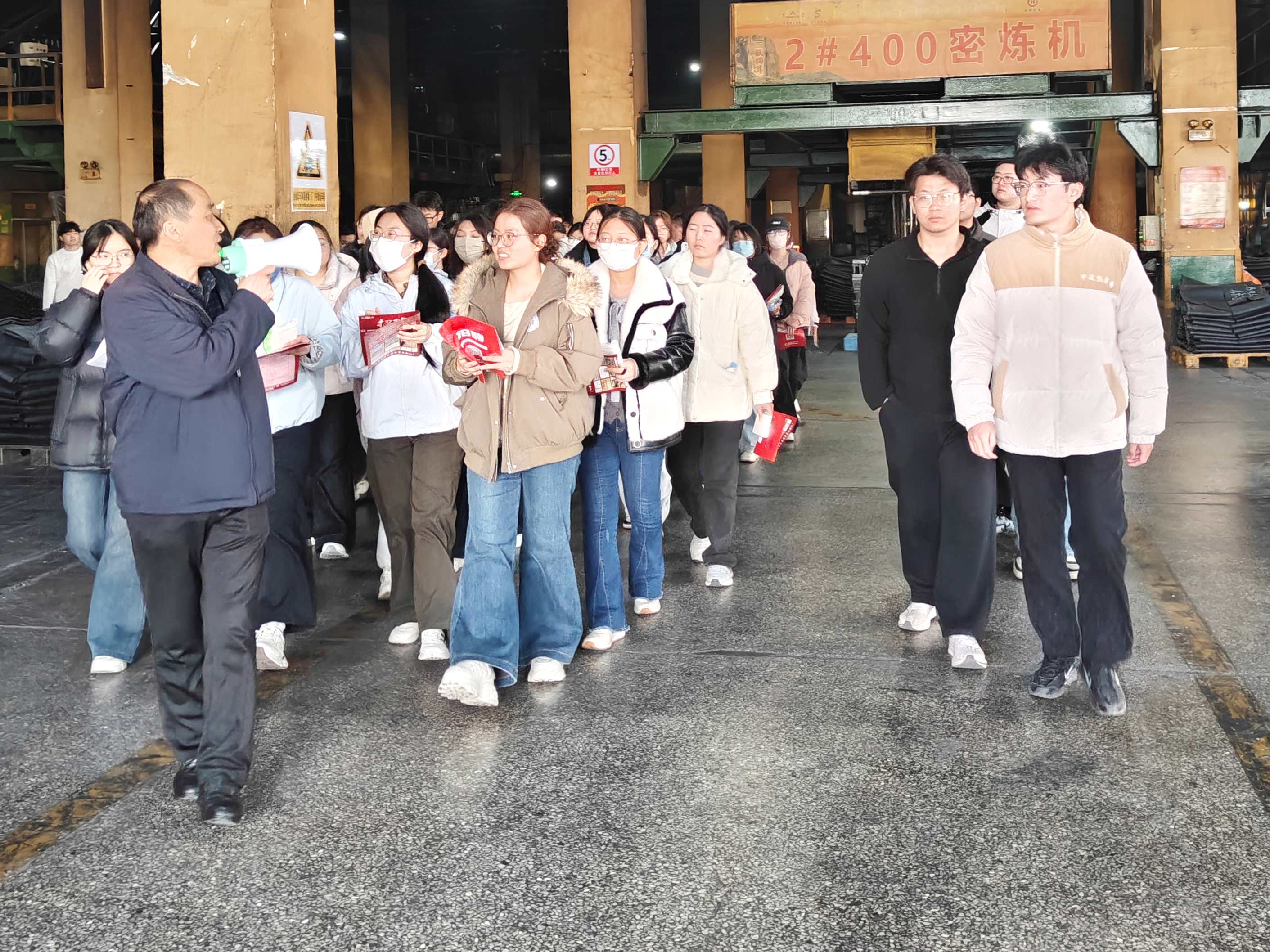 参观过程中,企业技术人员为师生们详细介绍了东岳轮胎的发展历程、产品核心技术、创新成果及行业市场前景,并重点围绕高分子材料专业知识,在轮胎研发、生产制造及性能优化等环节的具体应用与实践案例进行了深入讲解。同学们全神贯注、认真聆听,不时驻足观察生产细节,现场学习氛围浓厚而热烈。
